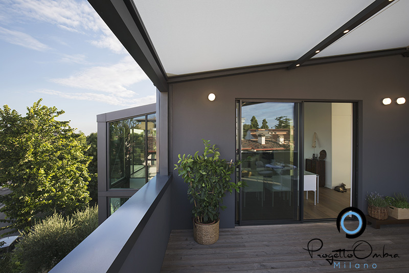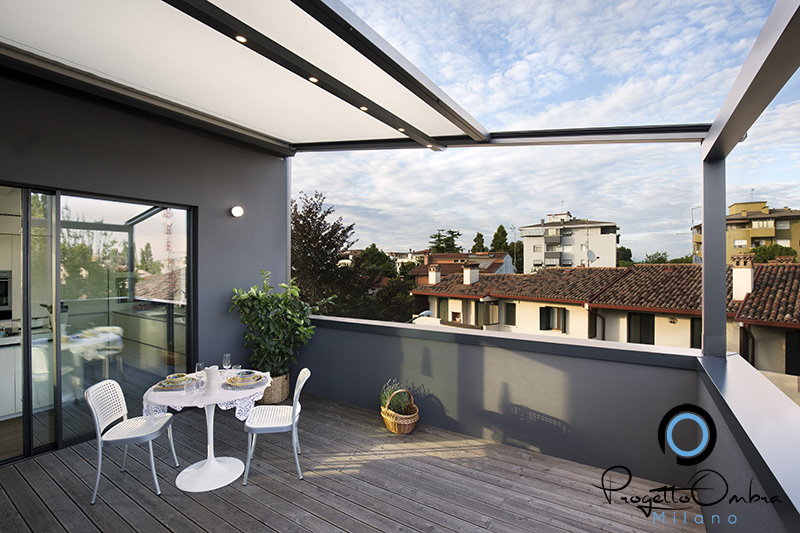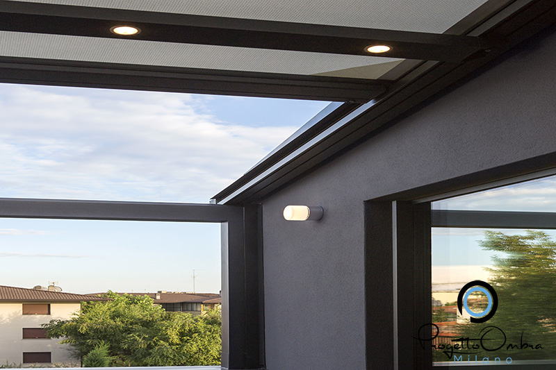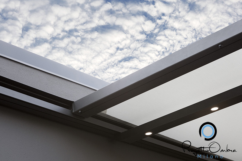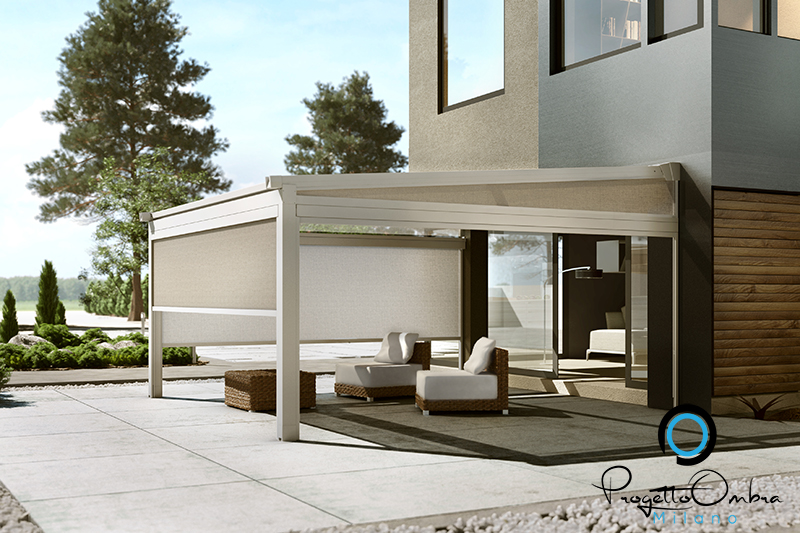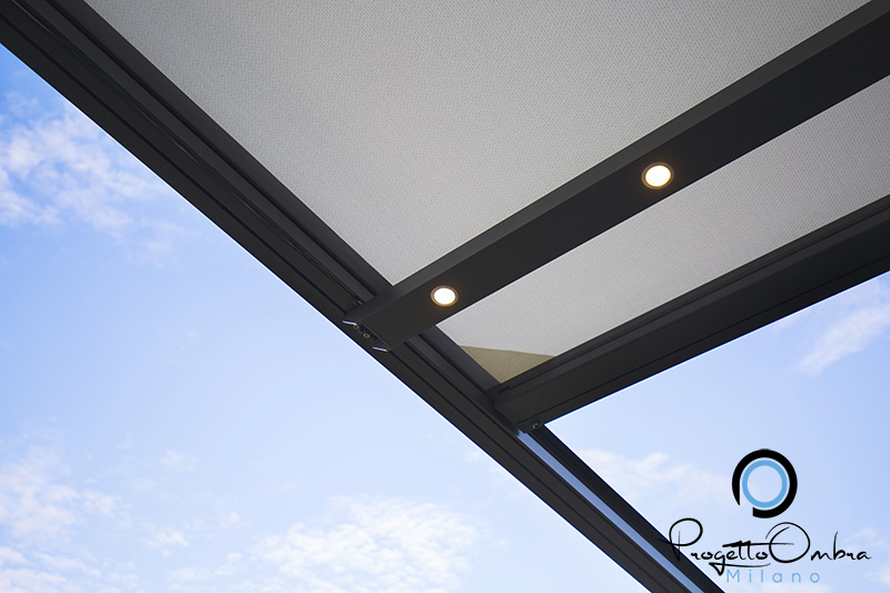 La struttura garantisce una resistenza certificata ad acqua e vento e protegge dai raggi solari, mantenendo l’isolamento termico dell’ambiente. Inoltre, è possibile dotarla di sensori climatici, che regolano la movimentazione del tessuto a seconda delle condizioni atmosferiche (sole, vento, pioggia).