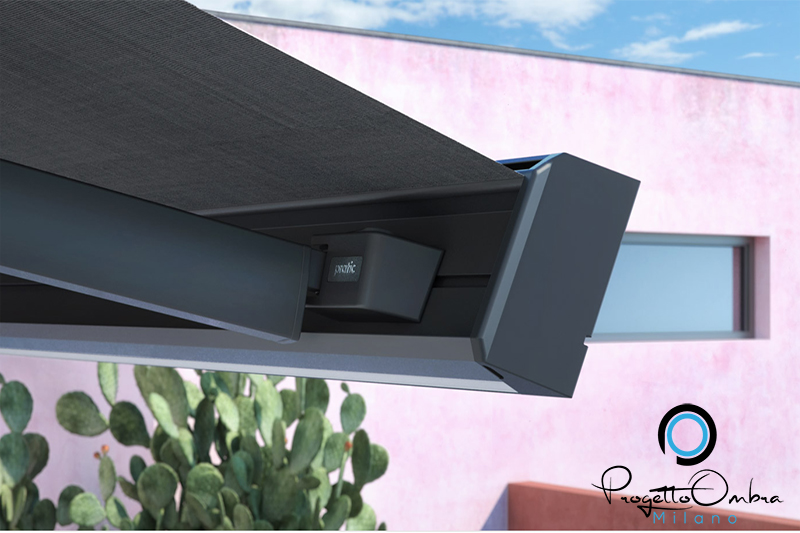 T-CODE è Un’ idea innovativa per la tua protezione solare, design pulito ed elegante realizzato con materiali orientati sulle attuali tendenze dell’Interior Design con tecnologie di ultima generazione. Una tenda da sole che puo’ essere installata su parete o su soffitto, dotata di motore azionabile tramite telecomando o direttamente con il tuo smartphone. Per le tue serate, T-Code può essere arricchita con faretti LED, permettendoti di ricreare atmosfere d’effetto rendendo unici i tuoi spazi.