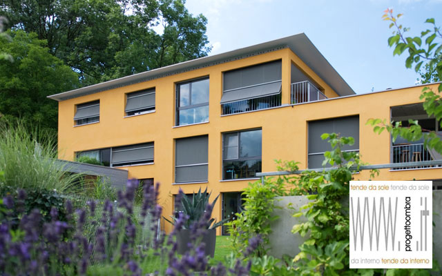VISOMBRA DI PROGETTO OMBRA Grazie alla combinazione intelligente tra una TENDA VERTICALE CON BRACCI A SPORGERE e l’angolo di apertura REGOLABILE DA 0° a 180°, questa tenda PER FACCIATE offre la COMBILAZIONE IDEALE tra LUCE E OMBRA.