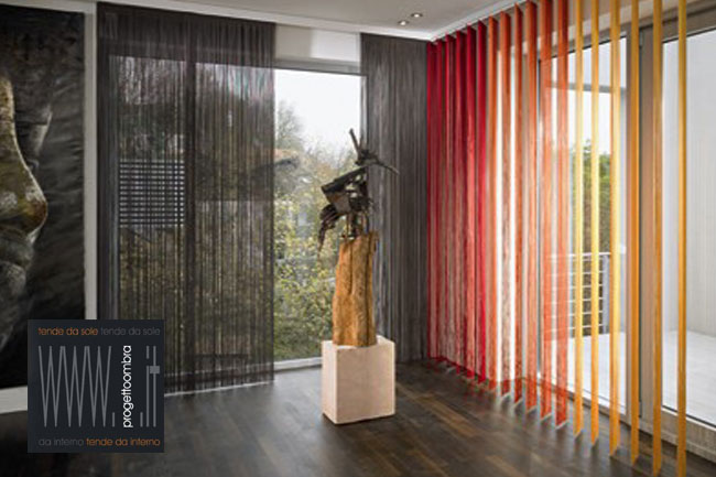Adeguate alle esigenze di uffici, negozi ed abitazioni con grandi vetrate,le tende a filo verticali orientabili presentano il vantaggio di una scermatura facilmente regolabile. gestibili tramite sistema di trascinamento a corda,quando vengono completamente aperte occupano uno spazio estremamente ridotto.