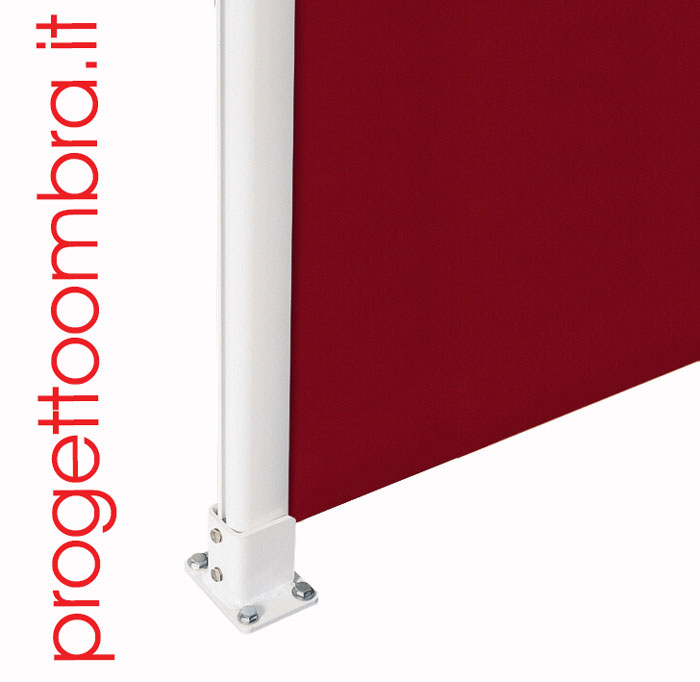 Una volta estratta la tenda, viene agganciata ad un montate di sostegno o ad un supporto a parete.
